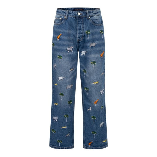 LOUIS VUITTON 루이비통 사파리 테마 자수 데님 팬츠