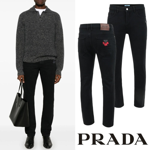 PRADA 프라다 클래식 레더 이니셜 레터링 융기모 슬림진 > 팬츠