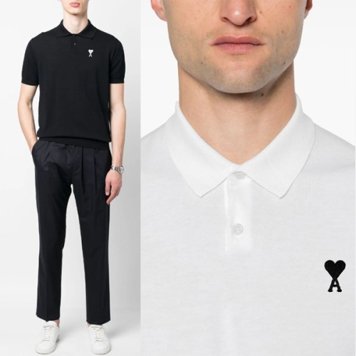 • AMI 아미 스몰하트로고 카라 니트반팔