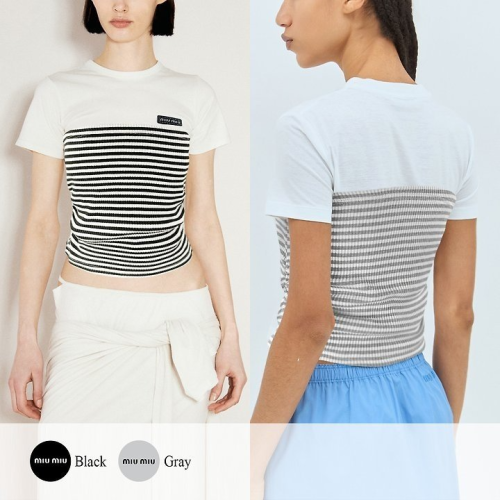 MIUMIU 미우미우 스트라이프 반팔티셔츠